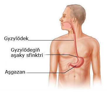 ► gyzylödegiň aşaky sfinktriniň işiniň bozulmagy;