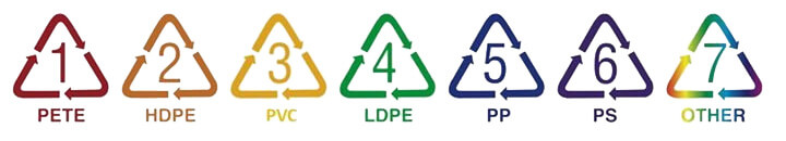 PET (1) – Polietilenterftalat: gazly içgiler, süýt önümler, ösümlik ýaglar, kosmetik önümler üçin ulanylýar.