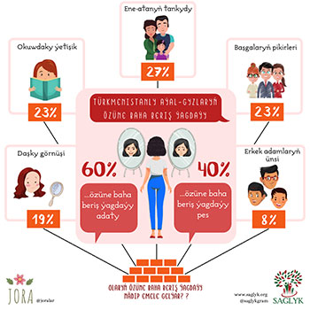 Şeýle-de, soragnamada zenanlarymyza özüňe baha bermäge täsir etjek 5 sebäpden birini saýlamagy teklip etdik.