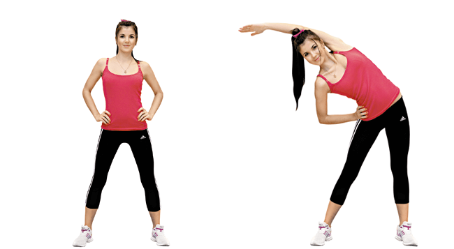 Maşk. Uludan dem alyň. Demiňizi goýbereniňizde, çep böwrüňizi mümkin boldugyndan egiň-de, sag böwrüňizi uzaldyň. Sag eliňizi ýere parallel edip uzadyň. Çanaklygyňyzy hereketlendirmejek boluň.