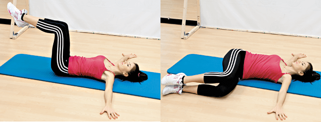Maşk. Uludan dem alyň. Demiňizi goýbereniňizde dyzyňyzy ýazman, aýaklaryňyzy galdyryň. Soňra aýaklaryňyzy beýleki gapdala goýuň.