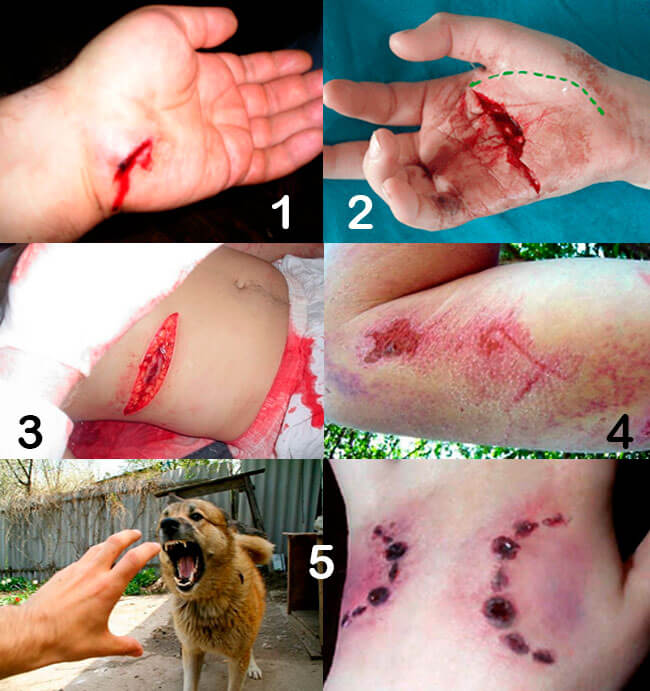Dişlenen ýaralar (Surat 5) – esasan öý we ýabany haýwanlaryň dişlemekligi netijesinde emele gelýär.